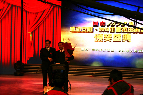 2月1日晚,由中共安陽市委、安陽市人民政府主辦,中共安陽市委宣傳部、安陽廣播電視臺(tái)、安陽市工信局承辦的“國(guó)窖1573杯感動(dòng)安陽?2012年度杰出創(chuàng)業(yè)功臣”頒獎(jiǎng)盛典在安陽電視臺(tái)演播大廳隆重舉行。林州重機(jī)集團(tuán)董事長(zhǎng)郭現(xiàn)生以絕對(duì)票數(shù)優(yōu)勢(shì)當(dāng)選。