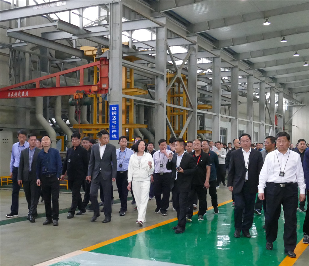 此次觀摩團(tuán)主要對(duì)我公司的表面處理車(chē)間電鍍工藝、土壤污染源頭防范、污水處理、危險(xiǎn)廢物管理等方面進(jìn)行考察。總經(jīng)理郭釧代表集團(tuán)公司對(duì)各位領(lǐng)導(dǎo)的到來(lái)表示熱烈的歡迎,并對(duì)公司基本情況、環(huán)保投入等方面做了簡(jiǎn)要介紹。公司環(huán)保項(xiàng)目辦主任李宏旺對(duì)公司的電鍍工藝、土壤污染源頭防范、污水處理、危險(xiǎn)廢物管理做了詳細(xì)的介紹。公司的環(huán)保治理工作得到了觀摩團(tuán)的一致好評(píng)。