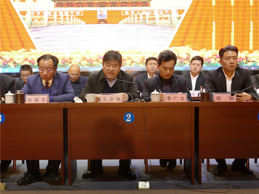 會(huì)議在雄壯的國(guó)歌聲中拉開序幕。公司董事、總經(jīng)理郭釧作了題為《求生存,謀發(fā)展,砥礪奮進(jìn)》的年度工作報(bào)告。報(bào)告全 面回顧總結(jié)了2019年度的工作和存在的不足,并明確了2020年公司經(jīng)營(yíng)目標(biāo)和發(fā)展方向。郭釧總經(jīng)理在報(bào)告中特別提到在2019年與公司同舟共濟(jì),共渡難關(guān)中涌現(xiàn)出的不畏艱難、敢于擔(dān)當(dāng)和奉獻(xiàn)的模范人物,對(duì)他們表示衷心的感謝。