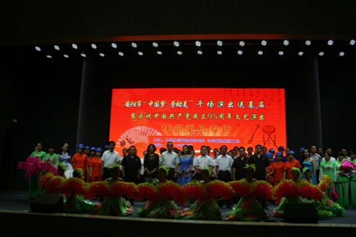 為慶祝中國(guó)共產(chǎn)黨成立95周年,樹立典型,表彰先進(jìn),7月1日,公司組織召開(kāi)了 “七一”表彰會(huì)暨文藝演出活動(dòng)。表彰會(huì)回顧總結(jié)了過(guò)去一年來(lái)的工作,并對(duì)在公司各條戰(zhàn)線上做出顯著成績(jī)的16名優(yōu)秀共產(chǎn)黨員予以表彰。表彰會(huì)結(jié)束后,公司精心組織排練的文藝節(jié)目向各條戰(zhàn)線上的職工進(jìn)行了精彩的匯報(bào)演出。公司主要領(lǐng)導(dǎo)出席此次會(huì)議并觀看演出。